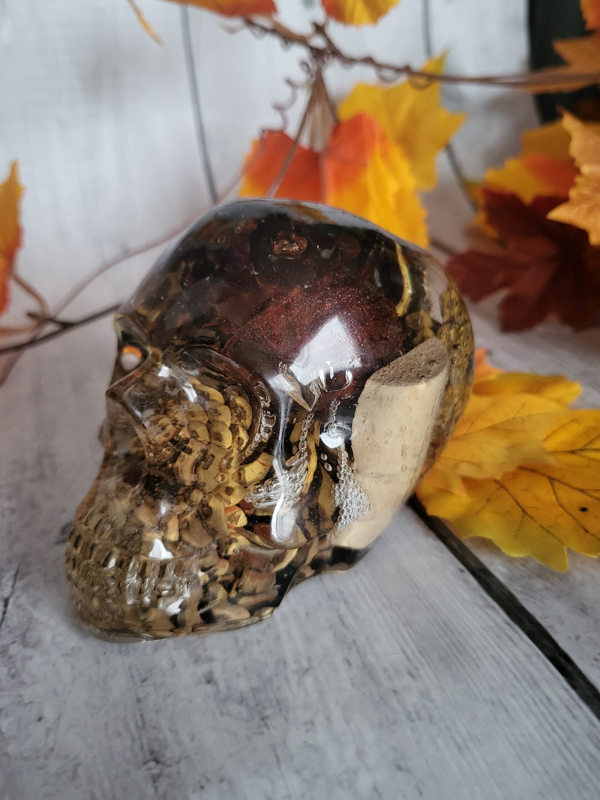 N'attendez plus pour acquérir cette pièce unique et fascinante. Commandez votre crâne en résine époxy avec incrustations naturelles dès aujourd'hui et découvrez la beauté de la nature dans une création artistique exceptionnelle.