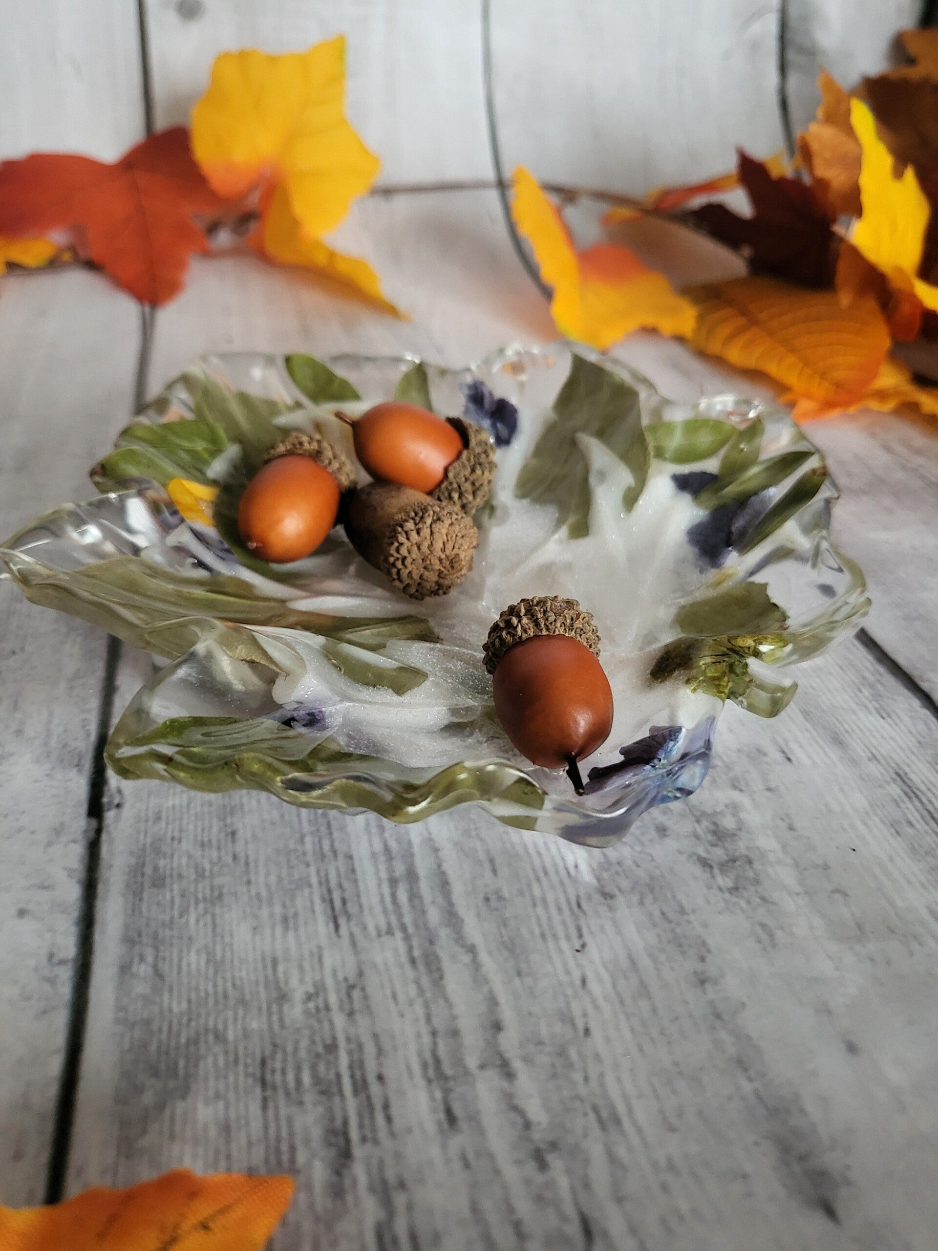 Découvrez ce vide-poche unique en forme de feuille d'érable, réalisé en résine époxy de haute qualité. Cet objet décoratif est parfait pour ajouter une touche d'éclat et de nature à votre espace.