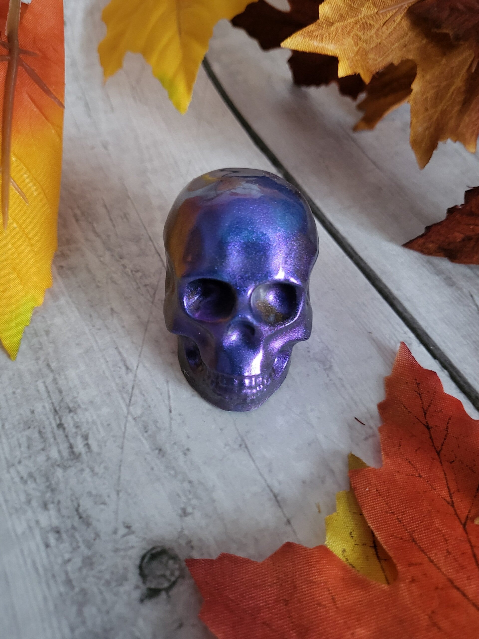 Mini Crâne multi chrome violet en Résine Époxy