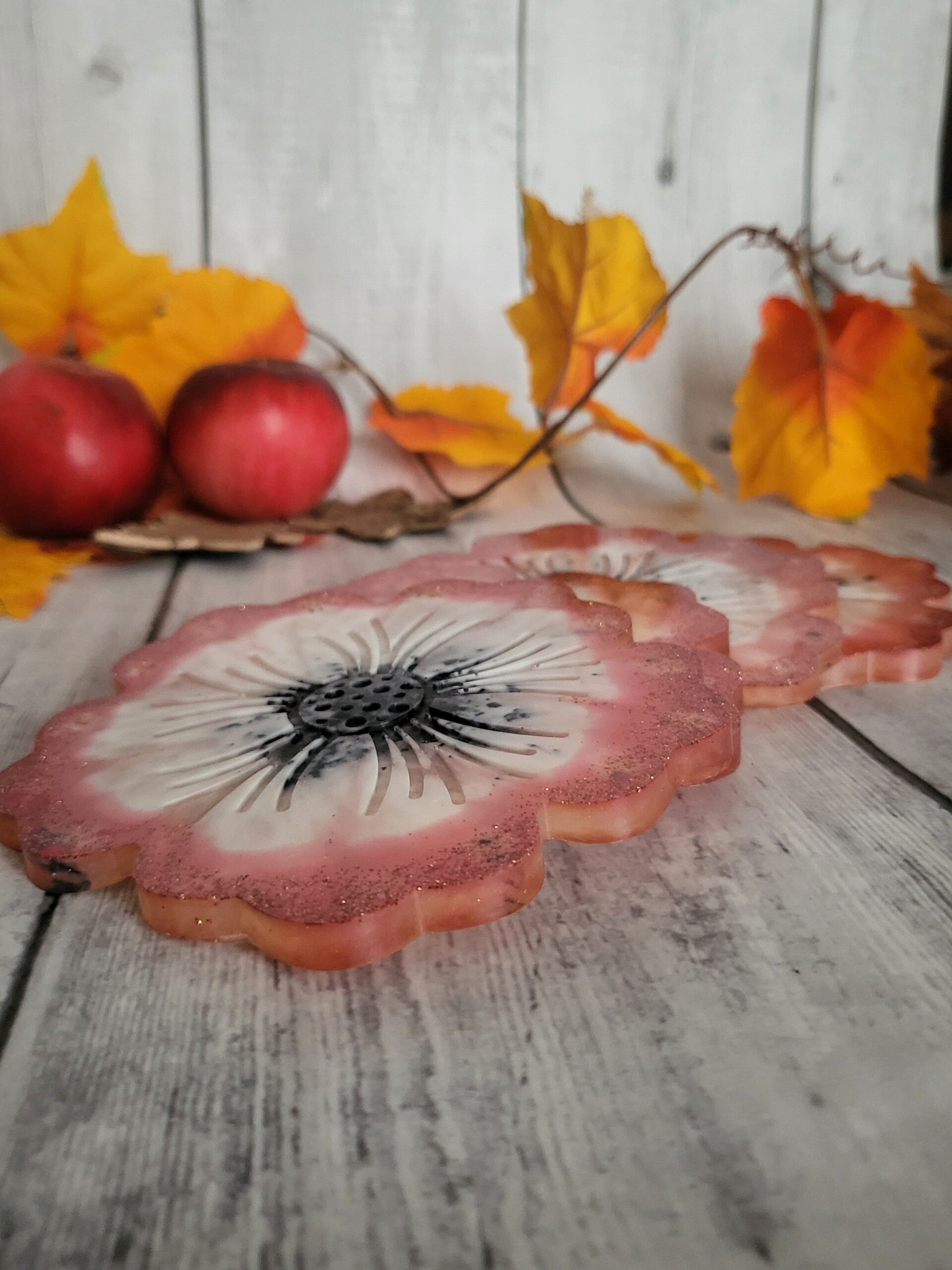 Ces sous-verres sont réalisés avec soin et attention aux détails, chaque fleur étant soigneusement creer dans la résine transparente pour créer un effet visuel saisissant.