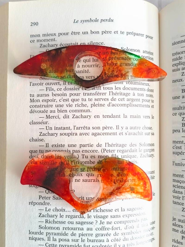 Choisissez votre modèle préféré parmi nos créations uniques en bois et résine époxy, et redécouvrez le plaisir de tourner les pages sans effort.